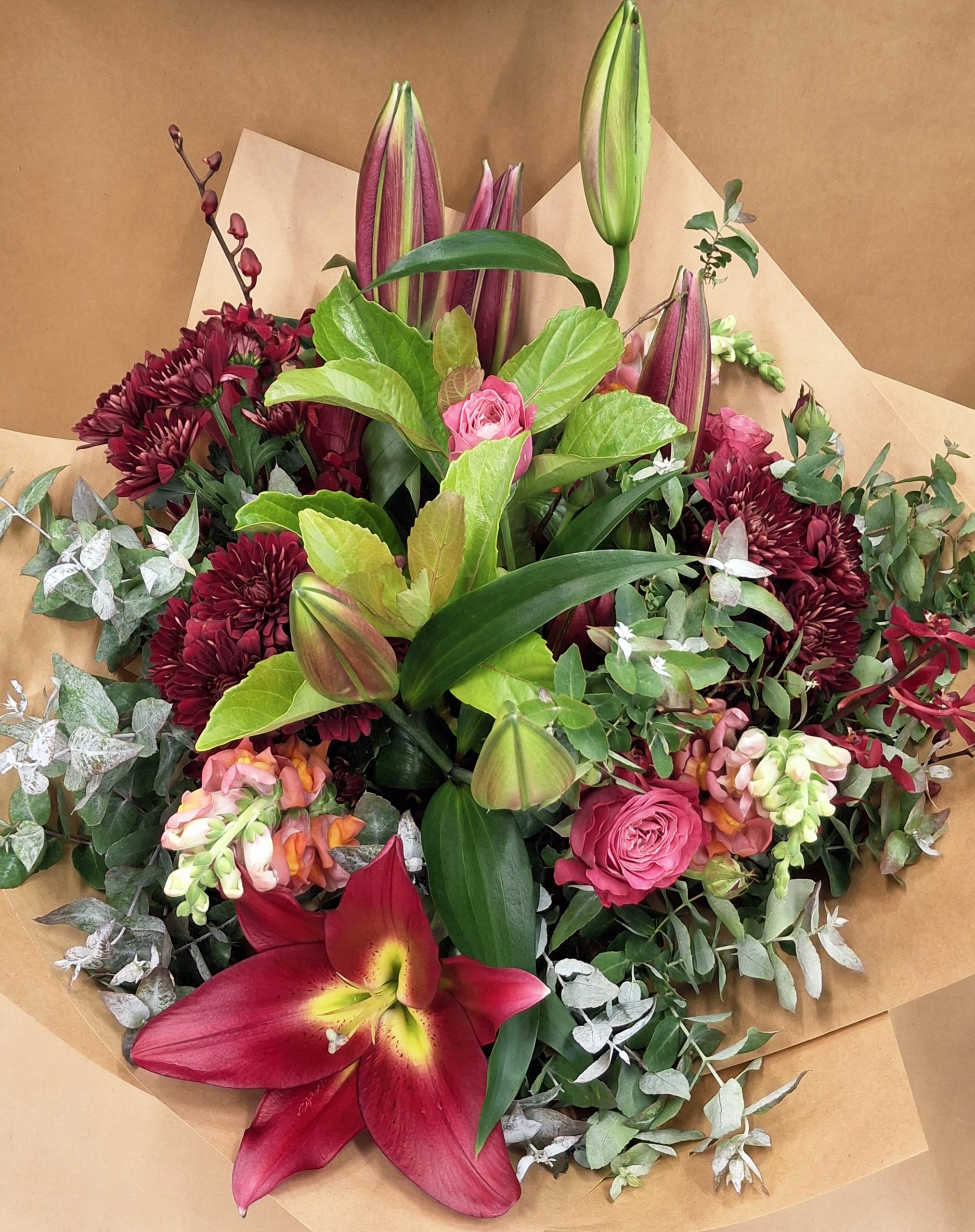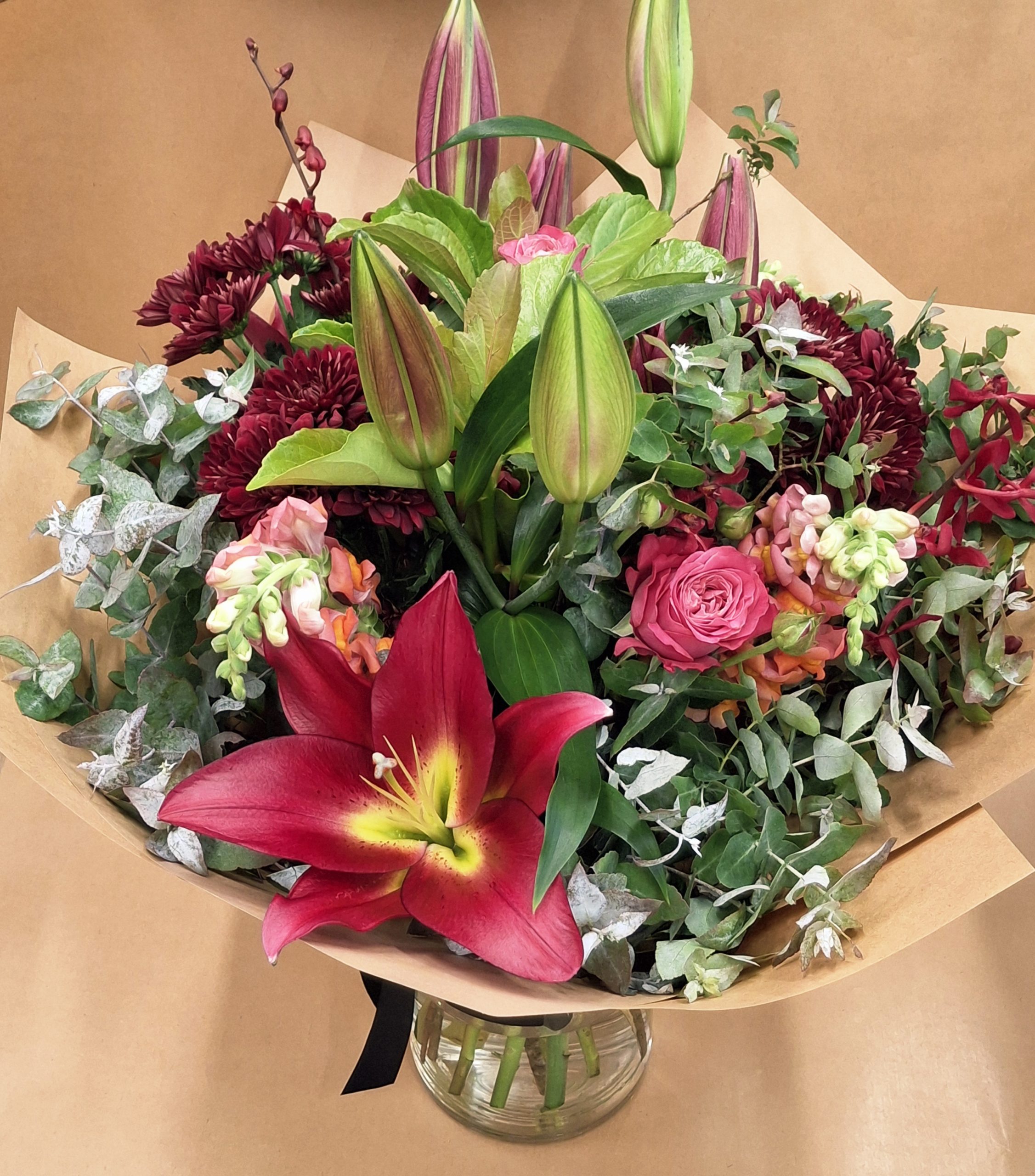 We select a combination of our best seasonal flowers based on your budget, in bright tones.
